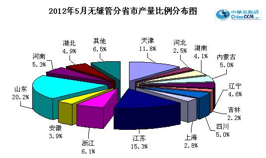 5月份國內無縫管產量超過10萬噸的地區有九個,分別是山東、江蘇、天津、浙江、河南、四川、內蒙、湖北和遼寧。5月份26個主產區中有11個地區環比4月份減產,減產地區近半數,累計環比4月減產12.8萬噸,其中山東地區減產6.3萬噸,占累計減產量的49%。十個主產區環比4月產量有所增加,累計增產9.3萬噸。(參見:圖一、圖二)