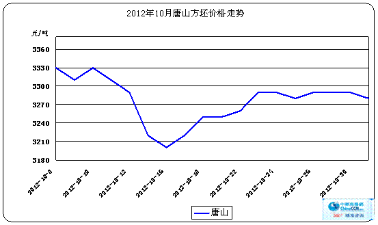 10月份唐山坯料市場震蕩運行為主。前半個月,震蕩明顯,幅度較大。“十一”期間,唐山本地坯料累計上漲近200元/噸,其后又走入一波下跌。市場進入下半個月以后,震蕩行情繼續,但市場明顯偏強,價格漲多跌少,商家普遍低價惜售,挺價意愿強。10月份整體成交量雖無大表現,但價格總體仍是偏強運行的。主要的原因有兩方面,首先本地庫存的不斷走低(