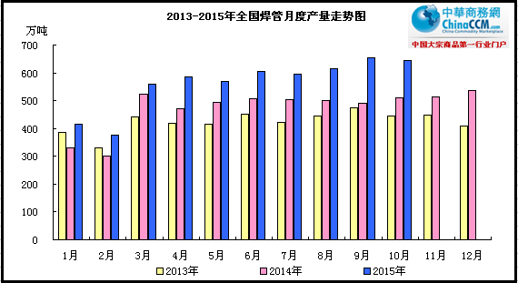 據國家統計局數據監測,10月份我國焊管產量644.62萬噸,同比增加131.67萬噸,同比增長25.67%;環比減少11.05萬噸,環比下降1.69%。前十月我國焊管累計產量5665.17萬噸,累計比同期增長20.65%。