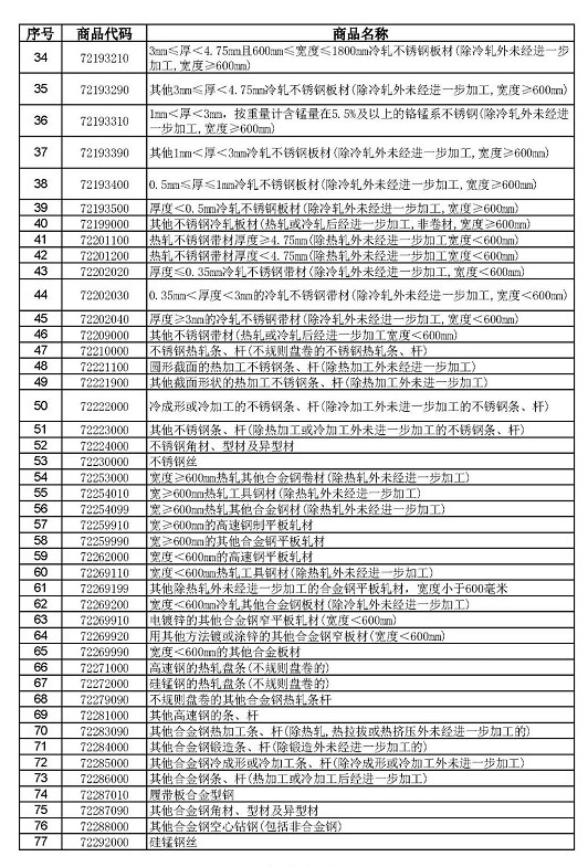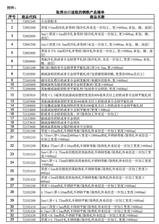 附件:取消出口退稅的鋼鐵產(chǎn)品清單