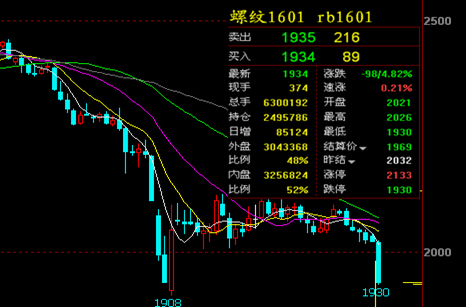 投資者對全球經濟尤其是中國經濟放緩較為擔憂,這種憂慮情緒迅速在資本市場蔓延,導致資本市場大幅下挫,進而拖累今日的商品期貨價格大幅走低,其中螺紋鋼期貨接近跌停,煤焦、礦石期貨盤中數次跌停。今日,螺紋鋼期貨主力合約以2021元/噸開盤,隨后快速跌破2000元/噸,接近中午價格最低跌停至1930元/噸,跌幅達到5%,成交量為451萬手,新增倉位10萬手;熱卷期貨主力合約以2032元/噸開盤,跟隨螺紋鋼期貨大幅下跌,盤中跌破前期低點1946元,創下新低1936元/噸,跌幅達到4.82%。其他黑色期貨品種方面,礦石期貨跌停收盤為362.5元/噸下跌15元/噸;焦煤期貨跌停收盤價為576元/噸,下跌23.5元/噸;焦炭期貨下跌26.5元/噸,收盤價為778.5元/噸,跌幅3.17%。