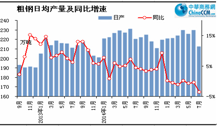 2015年8月上旬150家會員鋼鐵企業粗鋼日均產量169.05萬噸,較上一旬末增加8.74萬噸,增幅5.45%;生鐵日均產量166.71萬噸,較上一旬末增加6.28萬噸,增幅3.91%。而7月份國內粗鋼日均雖然有所回落,但仍達到212萬噸,1-7月國內粗鋼總量為4.74億噸,全年預計粗鋼產量仍有8.1億噸。因此,從供應上來說,我國的鋼材仍處于嚴重的供大于求的局面。