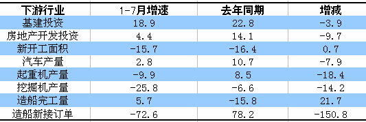 下游行業方面,今年以來,經濟下行壓力增大,政府通過加大基建投資力度托底經濟。今年鐵路投資繼續保持8000億元以上;重大水利工程投資規模也將超過8000億元,另外棚改、城市軌道、城市管網等建設多箭齊發。當前市場并不缺項目,缺的是資金面的強力支持。降息政策加之抵押補充貸款(PSL)的三次下調,將帶動一批基建項目開工增速。今年上半年,交通基礎設施建設投資合計約1萬億元,同比增長10.8%,其中鐵路和公路投資增速均超過10%,民航投資增速達到28%。下半年的基礎投資力度將持續增大,有利于鋼材需求的改善。其他行業如基建、汽車、造船等行業增速都出現了明顯的回落。