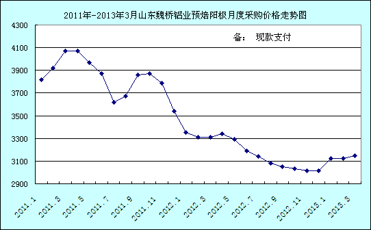 據(jù)最新消息,3月份山東魏橋現(xiàn)款采購(gòu)預(yù)焙陽(yáng)極價(jià)格上漲20元/噸至3145-3165元/噸。